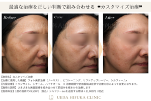 おすすめ美容治療|肌育治療|各種ピーリング|各種導入治療|しみ|そばかす|肝斑|しわ|たるみ|目のくま|にきび|にきびあと|毛穴|小顔|レーザー脱毛|薄毛|カスタマイズ治療|うえだ式コンビネーション糸リフト|HIFU|ECM製剤|ヒアルロン酸|ボトックス|ドクターズコスメ|症例写真|料金表|美容皮膚科WEB予約|美容皮膚科のお知らせ|モニター募集