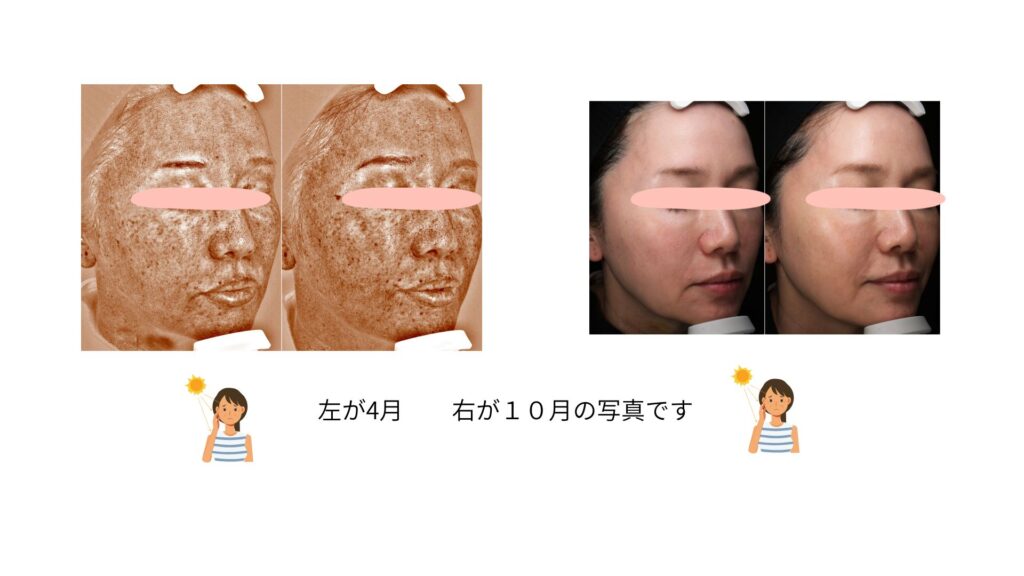 たった数ヶ月の変化なのに、顔がくすんでメラニン量が増えているのがわかります。