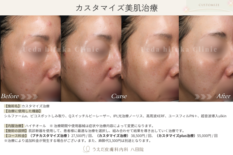 おすすめ美容治療|肌育治療|各種ピーリング|各種導入治療|しみ|そばかす|肝斑|しわ|たるみ|目のくま|にきび|にきびあと|毛穴|小顔|レーザー脱毛|薄毛|カスタマイズ治療|うえだ式コンビネーション糸リフト|HIFU|ECM製剤|ヒアルロン酸|ボトックス|ドクターズコスメ|症例写真|料金表|美容皮膚科WEB予約|美容皮膚科のお知らせ|モニター募集