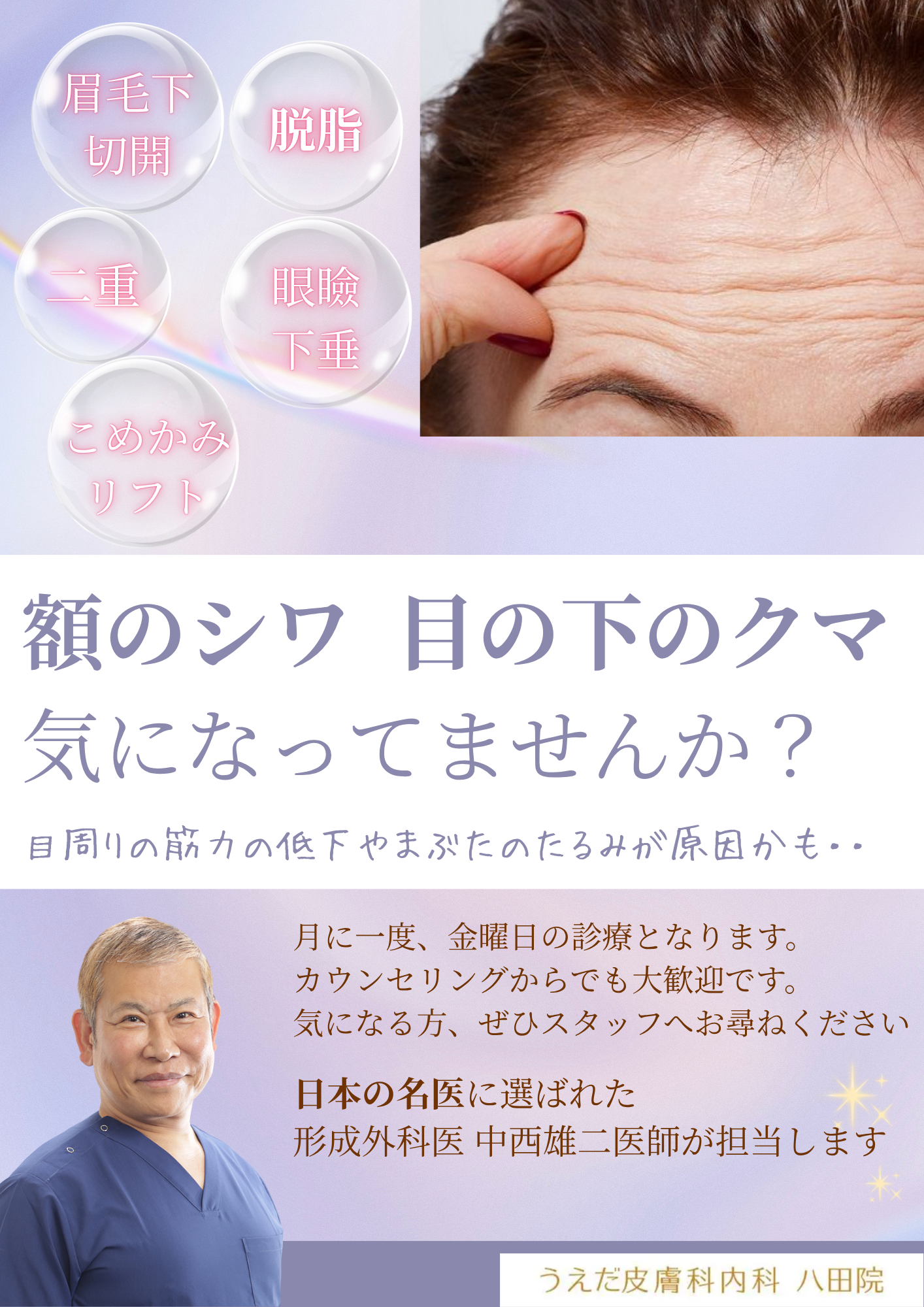 おすすめ美容治療|肌育治療|各種ピーリング|各種導入治療|しみ|そばかす|肝斑|しわ|たるみ|目のくま|にきび|にきびあと|毛穴|小顔|レーザー脱毛|薄毛|カスタマイズ治療|うえだ式コンビネーション糸リフト|HIFU|ECM製剤|ヒアルロン酸|ボトックス|ドクターズコスメ|症例写真|料金表|美容皮膚科WEB予約|美容皮膚科のお知らせ|モニター募集