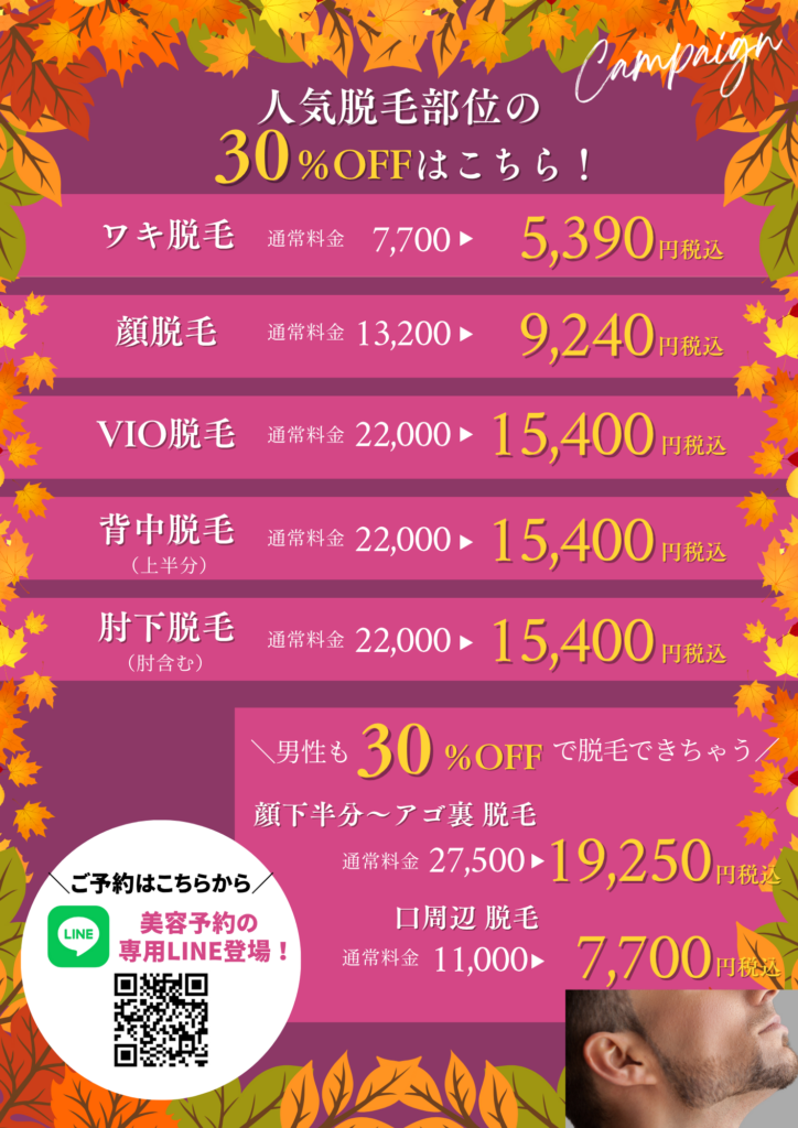 詳細 | 脱毛単回全メニュー30%OFF |