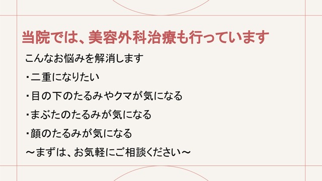 患者様の多くのお悩みの中で、美容皮膚科領域では満足いただけない悩みも多く、切る方法がいいかもとお話すると「どこのクリニックがいいですか?」「ここでできないんですか?」「美容外科クリニックは敷居が高い」などのお声が多くあります。